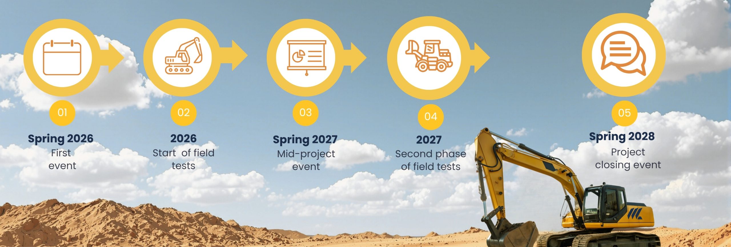 3 major events will mark key milestones of the project.
